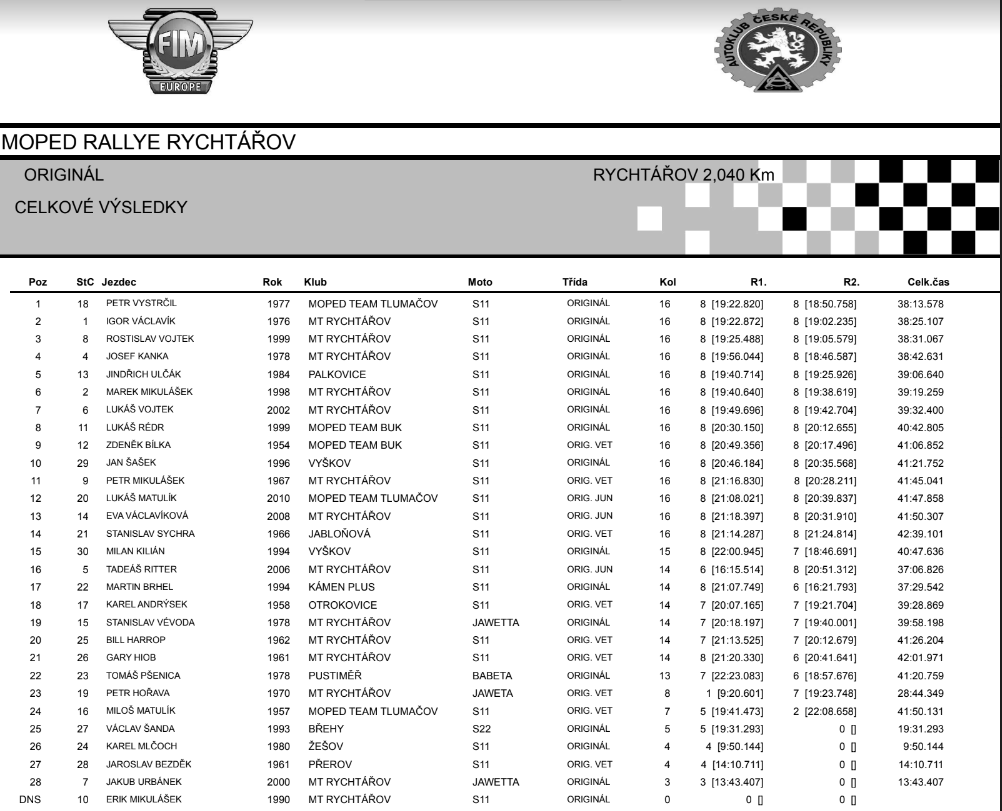 Závody mopedů kategorie ORIGINÁL: viz. pravidla kategorie Originál.